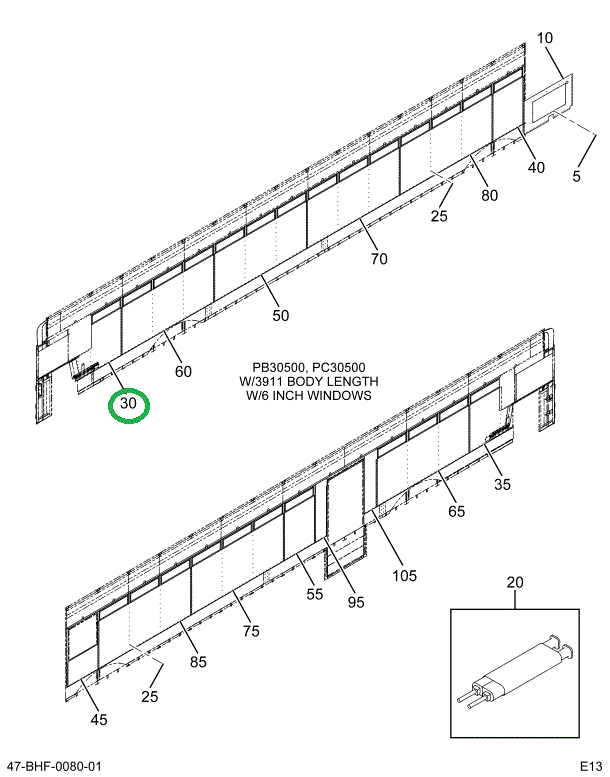 2201675C4 Lining Lower, 6 Inch Windows R Bus